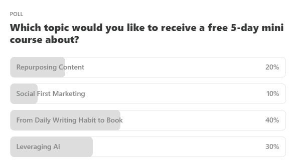 Thanks to everyone who voted! Your feedback is so valuable to me. The winner is: From Daily Writing Habit to Book.